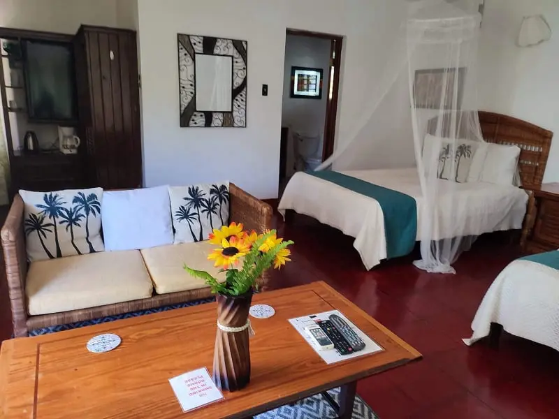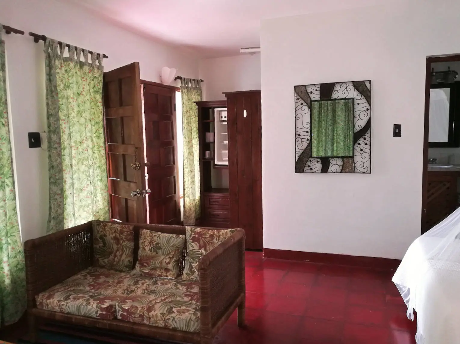 This villa has a living area, kitchenette and a great view of our lovely garden below.
